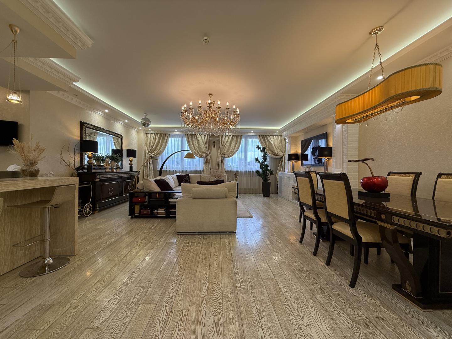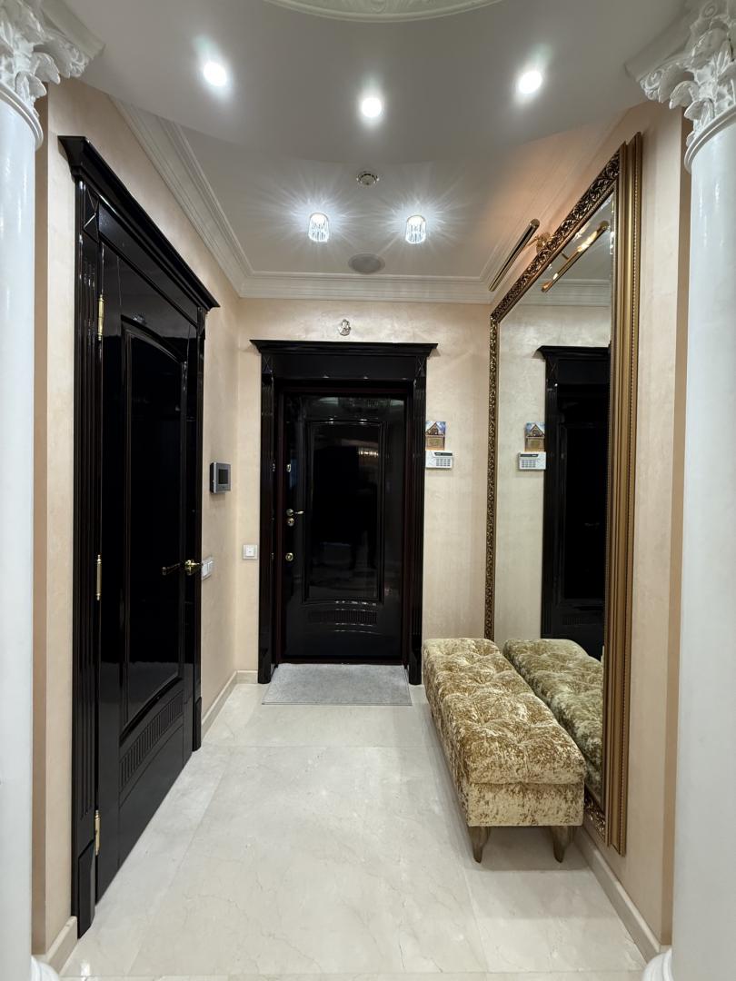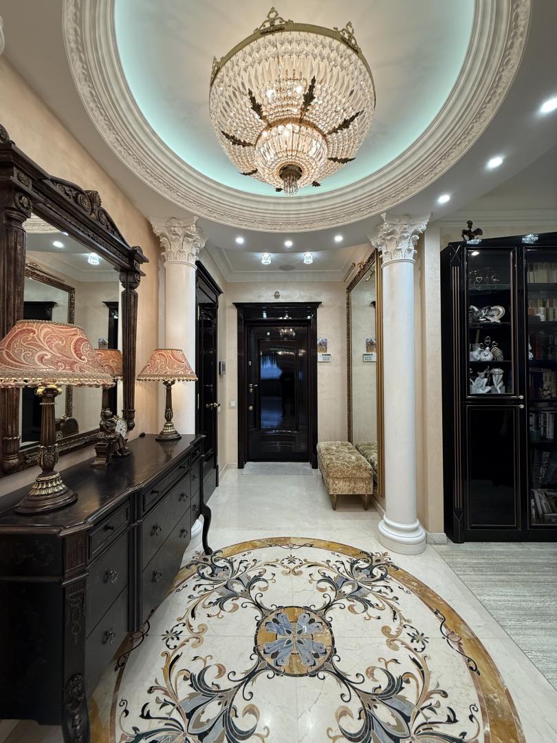 Предлагается в продажу квартира в жилом комплексе "Гранд-Парк" (огороженная и охраняемая территория, подземный паркинг). Дорогой дизайнерский ремонт делался для себя. Планировка: гостиная, 2 спальни, кухня, лоджия (сделанная как маленькая комната), 2 гардеробные, 2 санузла (в первом-ванная Jacuzzi с гидромассажем, биде; во втором-душевая кабина), постирочная, помещение для кондиционеров, где установлены внешние блоки мульти-сплит системы Mitsubishi Electric . Бытовая техника от лучших импортных производителей: стиральная, посудомоечная машины, духовая печь, микроволновая печь и варочная электроплита Miele. Сантехника от оригинальных производителей премиум класса: унитазы VilleroyBoch; ванна Jacuzzi; смесители с хрусталем Swarovski. Мебель и двери от фабрик премиум класса с мировым именем: кухня с полуостровом, 3 барными стульями из натуральной крокодиловой кожи и комодом с большим зеркалом Turri; двери и встроенная мебель библиотеки Мекран; большой диван в гостиной AlbertShtein и т.п. На полу натуральный наборный мрамор в холле при входе; в гостиной, спальнях и коридорах паркетная доска с позолоченным оттенком. В лифтовом и при квартирном холле сделан дизайнерский ремонт с элементами декора и подсветками. Свободная продажа, 1 взрослый собственник. В собственности более 15-и лет. Развитая инфраструктура. Звонить можно с 9.00 до 24.00 ежедневно. Огромная просьба, если возникают вопросы по объявлению, пожалуйста звоните, а не пишите сообщения!