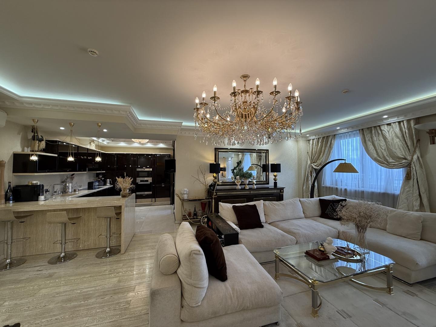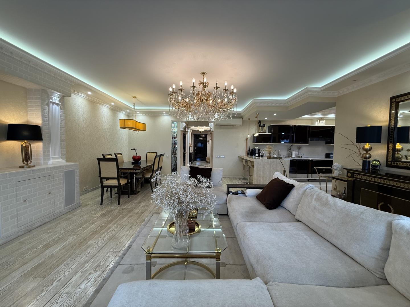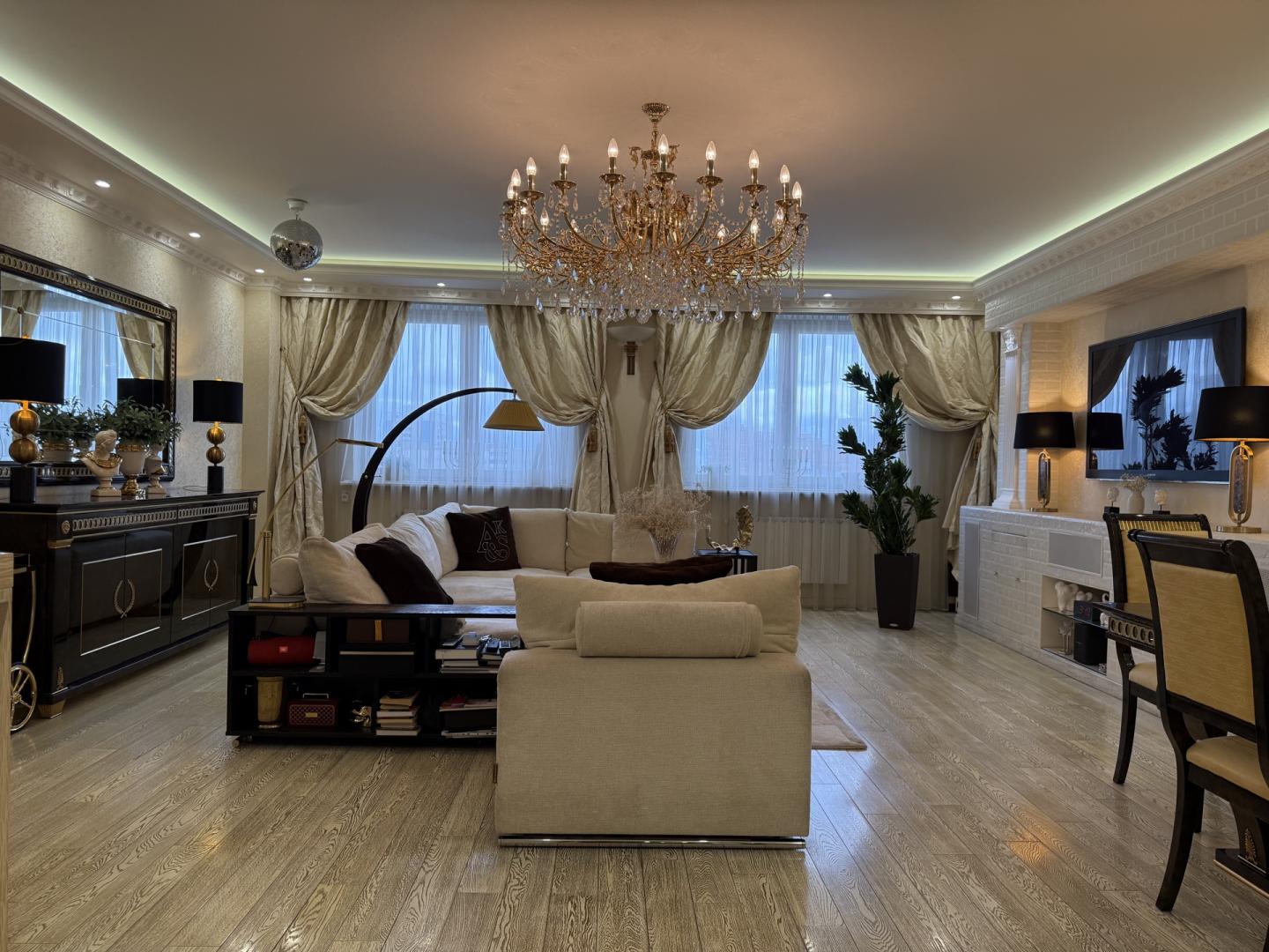 Предлагается в продажу квартира в жилом комплексе "Гранд-Парк" (огороженная и охраняемая территория, подземный паркинг). Дорогой дизайнерский ремонт делался для себя. Планировка: гостиная, 2 спальни, кухня, лоджия (сделанная как маленькая комната), 2 гардеробные, 2 санузла (в первом-ванная Jacuzzi с гидромассажем, биде; во втором-душевая кабина), постирочная, помещение для кондиционеров, где установлены внешние блоки мульти-сплит системы Mitsubishi Electric . Бытовая техника от лучших импортных производителей: стиральная, посудомоечная машины, духовая печь, микроволновая печь и варочная электроплита Miele. Сантехника от оригинальных производителей премиум класса: унитазы VilleroyBoch; ванна Jacuzzi; смесители с хрусталем Swarovski. Мебель и двери от фабрик премиум класса с мировым именем: кухня с полуостровом, 3 барными стульями из натуральной крокодиловой кожи и комодом с большим зеркалом Turri; двери и встроенная мебель библиотеки Мекран; большой диван в гостиной AlbertShtein и т.п. На полу натуральный наборный мрамор в холле при входе; в гостиной, спальнях и коридорах паркетная доска с позолоченным оттенком. В лифтовом и при квартирном холле сделан дизайнерский ремонт с элементами декора и подсветками. Свободная продажа, 1 взрослый собственник. В собственности более 15-и лет. Развитая инфраструктура. Звонить можно с 9.00 до 24.00 ежедневно. Огромная просьба, если возникают вопросы по объявлению, пожалуйста звоните, а не пишите сообщения!